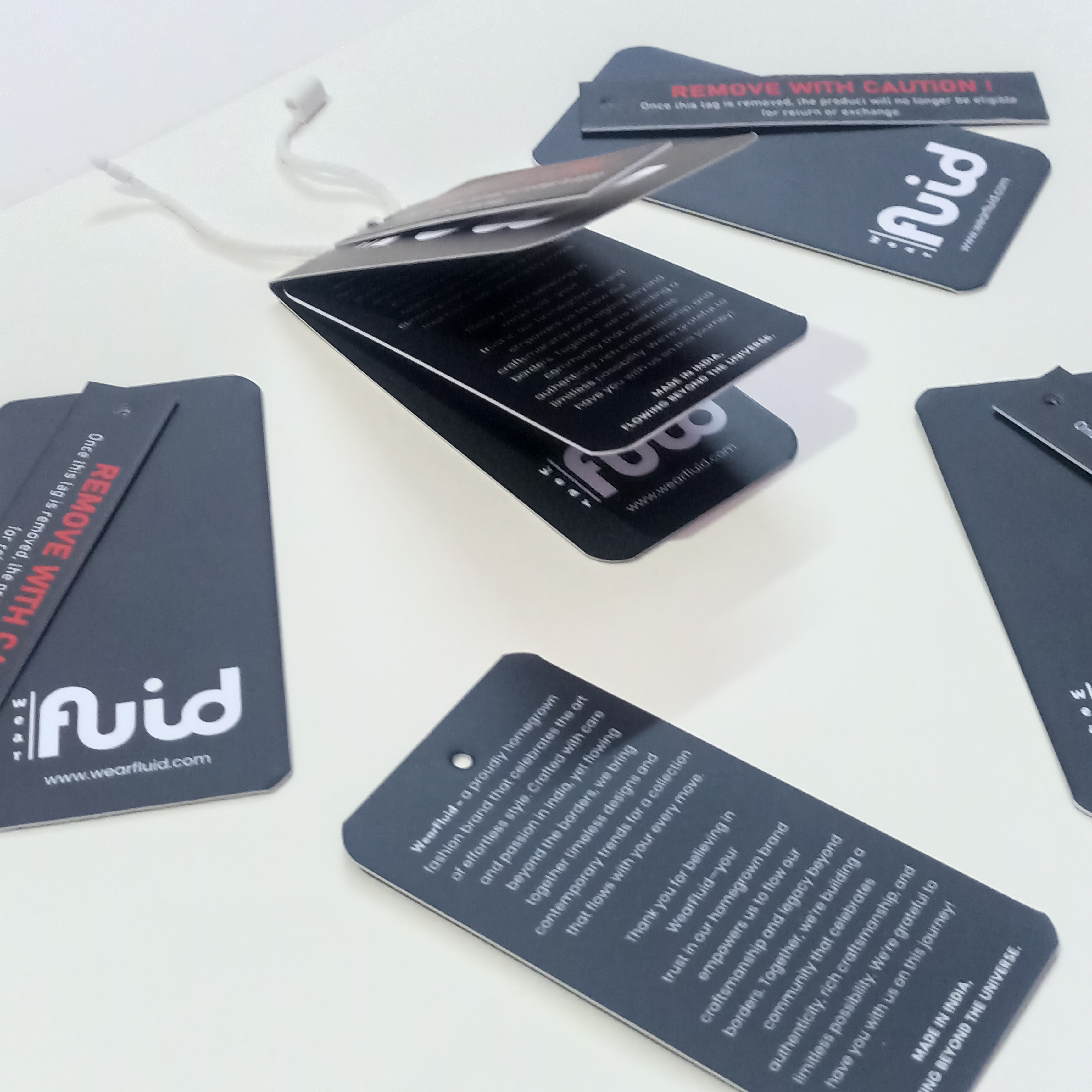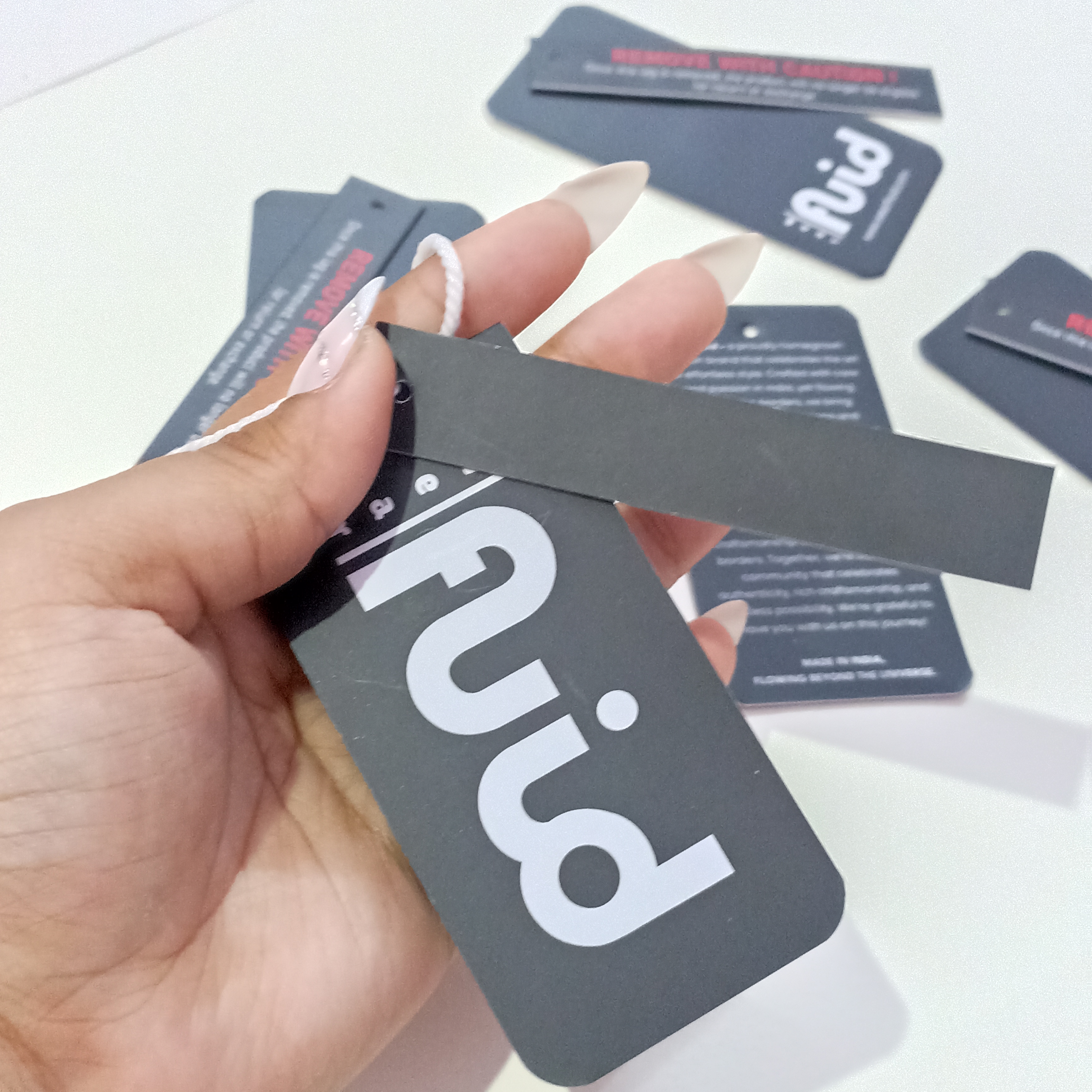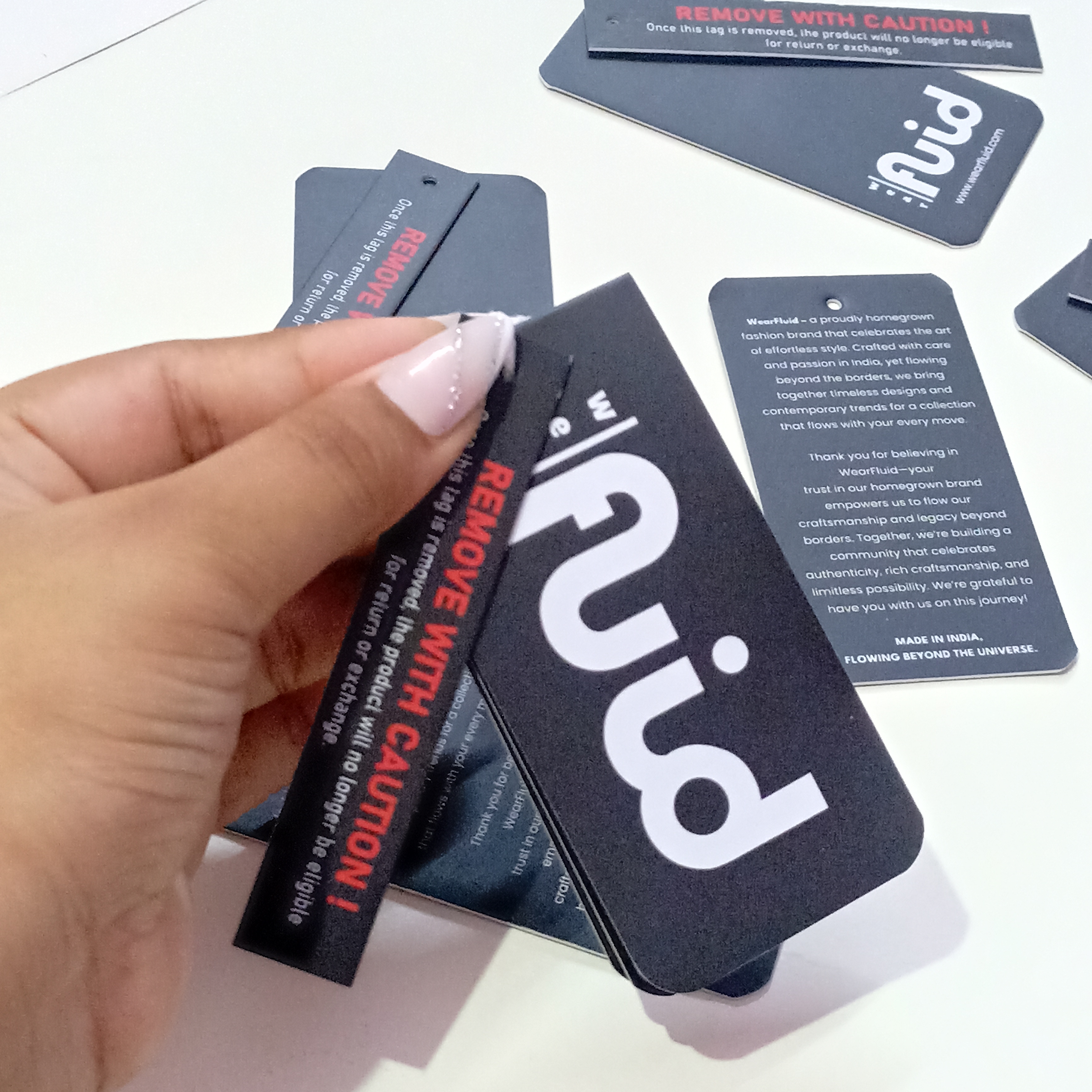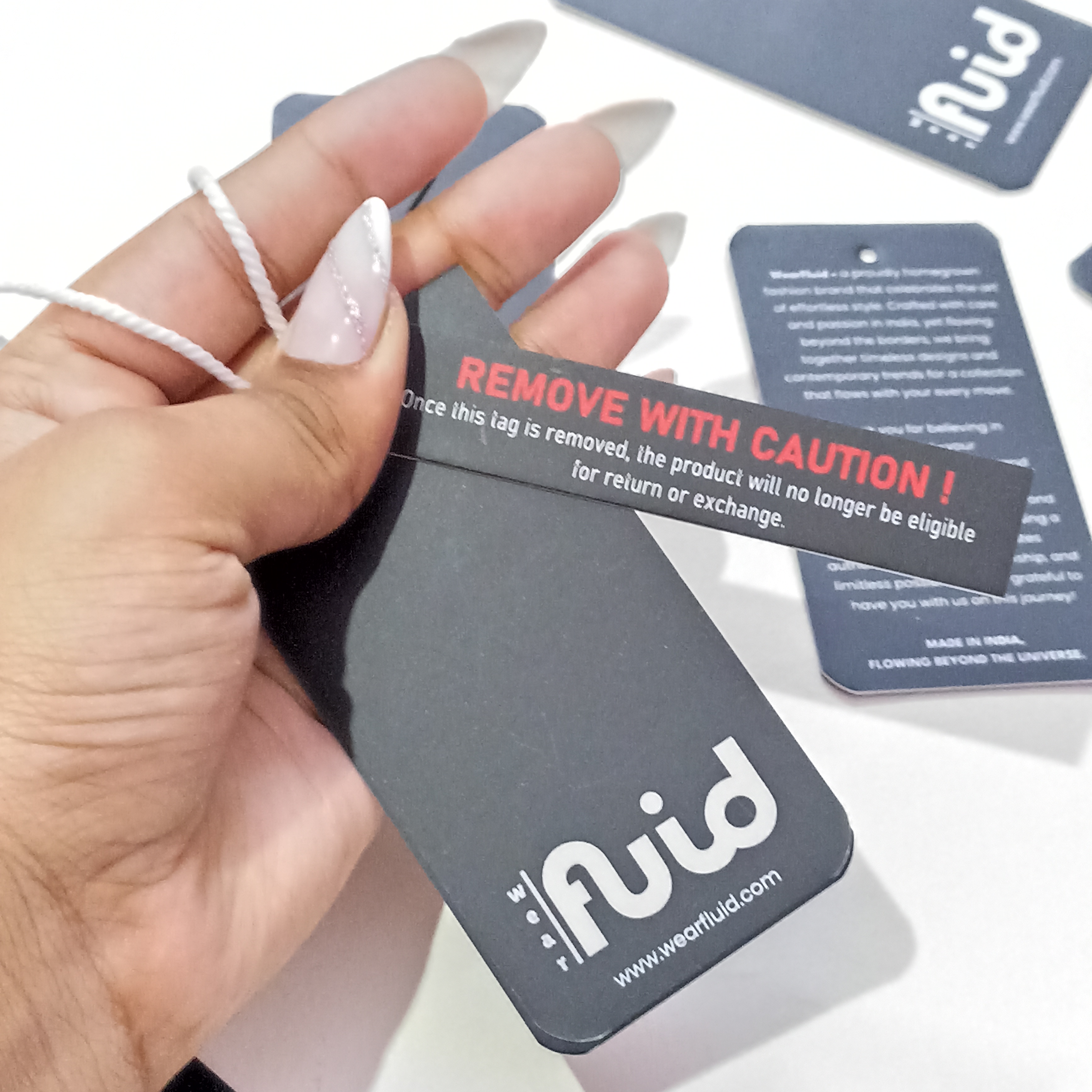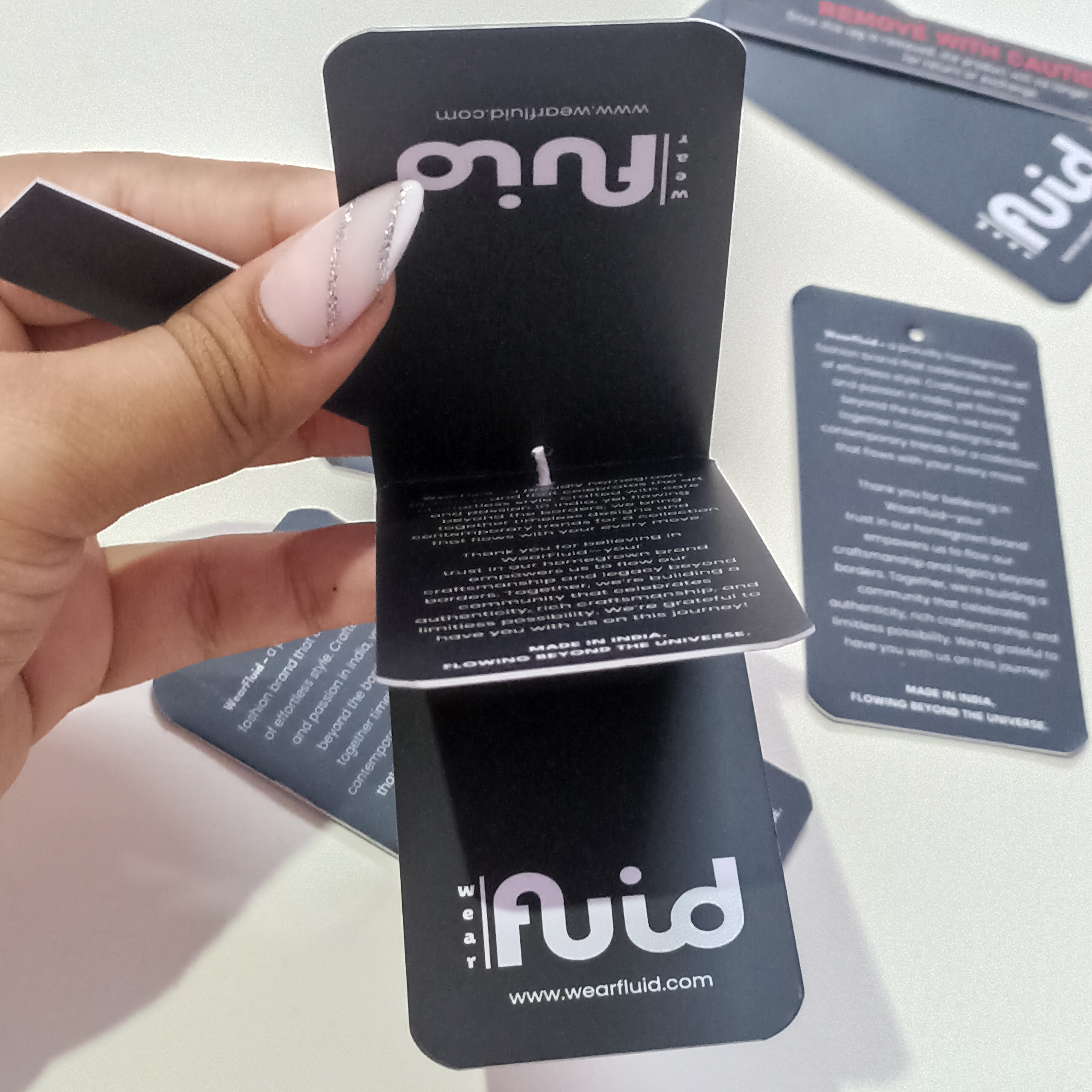A paper hang tag is a printed tag that hangs from a product (like clothing, bags, accessories, or gift items) and provides essential details such as: